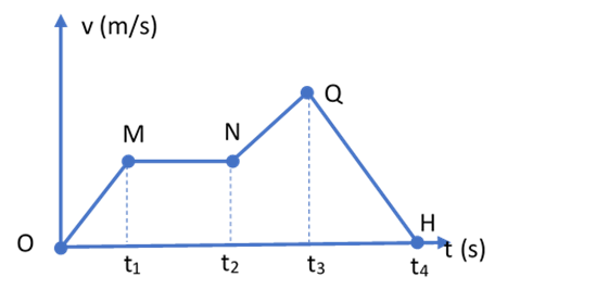 Đồ thị vận tốc theo thời gian của một xe máy chuyển động trên một đường thẳng được biểu diễn như hình vẽ. Trong khoảng thời gian nào, xe máy chuyển động chậm dần đều?