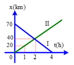 Đồ thị tọa độ - thời gian của hai chiếc xe I và II được biểu diễn như hình vẽ bên. Hai xe gặp nhau tại vị trí cách vị trí xuất phát của xe I một đoạn?