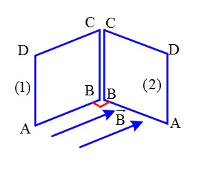 Một khung dây dẫn hình chữ nhật không bị biến dạng được đặt trong một từ trường đều ở vị trí (1) mặt phẳng khung dây song song với các đường sức từ. Sau đó, cho khung dây quay 90° đến vị trí (2) vuông góc với các đường sức từ.