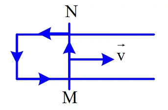 Trong mặt phẳng hình vẽ, thanh kim loại MN chuyển động trong từ trường đều thì dòng điện cảm ứng trong mạch có chiều như trên hình. Nếu vậy, các đường sức từ