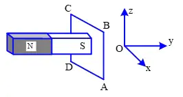 Đặt một thanh nam châm thẳng ở gần một khung dây kín, phẳng ABCD, song song với mặt phẳng Oxz, nam châm song song với trục Oy như hình vẽ. Đưa nam châm ra xa khung dây theo chiều âm của trục Oy thì