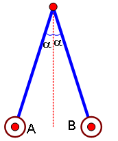 Hai quả cầu kim loại nhỏ A và B giống hệt nhau, được treo vào một điểm O bằng hai sợi chỉ dài bằng nhau. Khi cân bằng, ta thấy hai sợi chỉ làm với đường thẳng đứng những góc α bằng nhau (xem hình vẽ). Trạng thái nhiễm điện của hai quả cầu sẽ là trạng thái nào đây?