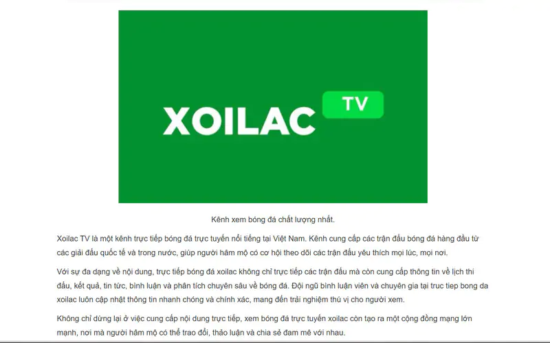Ở thời điểm hiện tại, nếu nhắc tới một trong những nơi xem truc tiep bong da tốt nhất tại Việt Nam thì chúng ta không thể bỏ qua Xoilac TV. Xoilac TV là một nền tảng đã có danh tiếng và tên tuổi nhất định trong lĩnh vực cung cấp video trực tiếp thi đấu bóng đá cho người hâm mộ Việt.